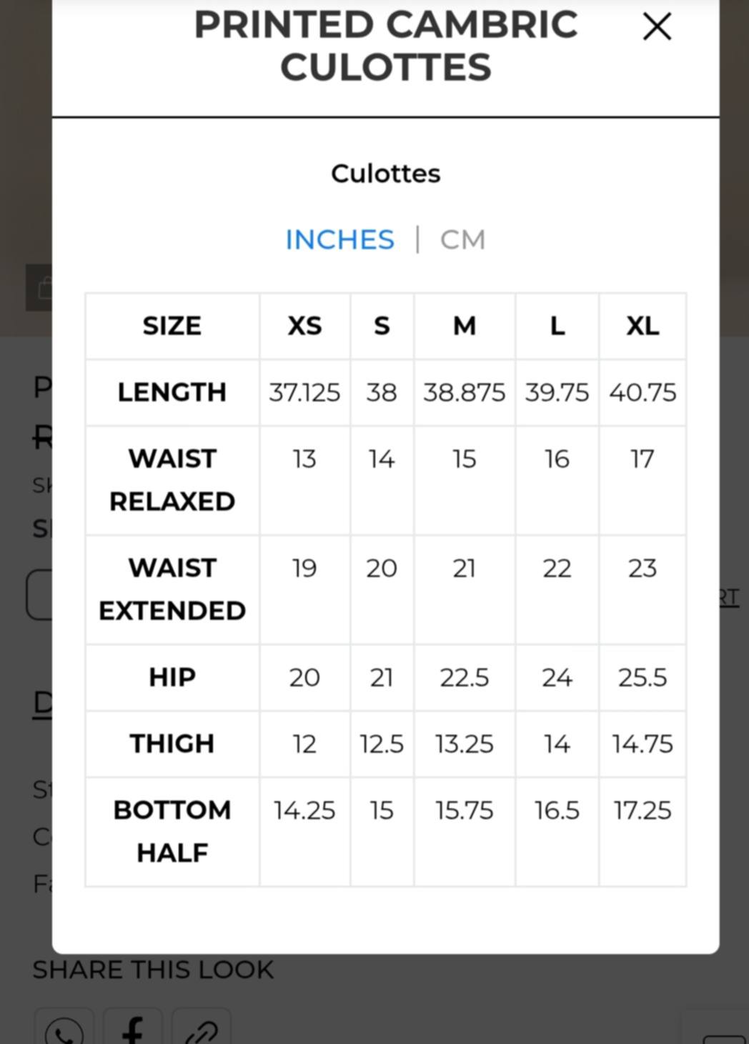 - Style: Culottes (wide-leg)